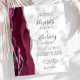 The left-hand edge of this elegant modern wedding invitation features a burgundy watercolor agate border trimmed with silver faux glitter. The customisable text combines handwriting, copperplate and italic fonts in black on a grey and white marble background. The reverse side features a matching burgundy and silver agate design.