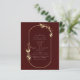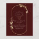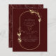 Budget, classic, and minimalist wedding invitations featuring a gold greenery arch frame, a deep burgundy background, and elegant typography. Customise these cards to make your own unique wedding invites. Select the "Personalise" button to change the wording. This timeless design matches any garden or outdoor wedding celebration, bohemian event, or intimate family gathering. Navy blue and sage green colour variants are available in our store. As part of the budget selection on Zazzle, this sheet isn't a standard invite size or paper quality. If you want this design on an invitation card you can find it in our store or use the Zazzle Make Machine to transfer it onto the product of your choice. If you have any design-related questions, don't hesitate to contact me through the button below!