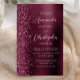 The left-hand edge of this elegant modern wedding invitation features a burgundy faux glitter border. The customisable text combines white handwriting and sans serif fonts on a burgundy faux brushed metal background. The reverse side features a matching burgundy glitter and brushed metal design.