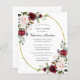 Elegant burgundy red and blush pink roses are tucked into eucalyptus greenery. The two floral arrangements decorate an oval gold frame. You can edit all of the text to describe your bridal shower perfectly. This item is part of the Rosely collection that contains templates you can use to create bridal luncheon invitations and supplies.