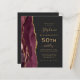 The left-hand edge of this elegant modern 50th birthday party invitation features a burgundy red watercolor agate border trimmed with gold faux glitter. The customisable text combines gold-coloured handwriting, copperplate and italic fonts on a slate black background. Add RSVP instructions on the back of the card, along with a QR code guests can scan to respond online.