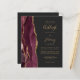 Save the cost of printing and mailing separate RSVP cards with this elegant modern all-in-one budget wedding invitation. The left-hand edge features a burgundy watercolor agate border trimmed with gold faux glitter. The customizable text combines gold-colored handwriting, copperplate and italic fonts on a slate black background. The reverse side provides space for wedding details on a solid slate black background, along with a QR code guests can scan to visit your website and RSVP.