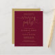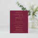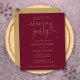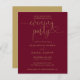 This elegant burgundy and gold budget wedding evening party invitation can be personalised with your celebration details set in chic gold typography. Designed by Thisisnotme©