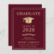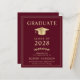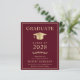 Elegant and budget-friendly no photo burgundy red classic graduation announcement with a gold grad cap and modern light gold typography for the graduate's name, class year, school, college or university, degree and major or honours.