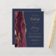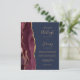 Save the cost of printing and mailing separate RSVP cards with this elegant modern all-in-one budget wedding invitation. The left-hand edge features a burgundy watercolor agate border trimmed with gold faux glitter. The customisable text combines gold-coloured handwriting, copperplate and italic fonts on a navy blue background. The reverse side provides space for wedding details on a solid navy blue background, along with a QR code guests can scan to visit your website and RSVP. NOTE: Envelopes are not automatically included with these budget invitations, so please remember to choose the "blank white envelopes" option!