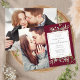 Featuring delicate watercolor greenery leaves on a burgundy background, this chic botanical budget wedding invitation can be personalised with your special photos and special wedding day details. Designed by Thisisnotme©