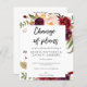 Save money on formal invitations with this smaller invitation that has an option for envelopes. Change the plans for your wedding with this Burgundy Marsala Floral & white Invitation. Small version.