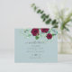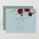 Pretty Burgundy Roses, Eucalyptus Leaves and Gypsophila feature on this elegant themed wedding stationery item.