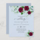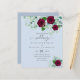Pretty Burgundy Roses, Eucalyptus Leaves and Gypsophila feature on this elegant themed wedding stationery item.