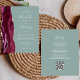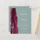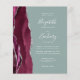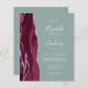 The left-hand edge of this elegant modern wedding invitation features a burgundy watercolor agate border trimmed with silver faux glitter. The customisable text combines white handwriting, copperplate and italic fonts on a sage green background. Add additional details on the back, along with a QR code to help your guests visit your wedding website.