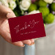 Simple trendy modern dark red wine burgundy budget affordable wedding thank you small note card featuring a chic handwriting calligraphy script with a little heart. +++++++++++ Personalise it with your text and signature! ++++++++++ Please note that the background colour can be changed to match your wedding colour scheme. If comfortable doing it, you can change it after selecting CUSTOMIZE IT option. +++++++++ If you need help, please message the designer!