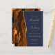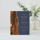 The left-hand edge of this elegant modern wedding invitation features a burnt orange watercolor agate border trimmed with faux gold glitter. The customizable text combines gold colored handwriting, copperplate and italic fonts on a dark navy blue background. The reverse side features a matching burnt orange and gold agate design. NOTE: Envelopes are not automatically included with these budget invitations, so please remember to choose the "blank white envelopes" option!
