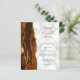 The left-hand edge of this elegant modern wedding invitation features a burnt orange watercolor agate border trimmed with faux gold glitter. The customizable text combines black and gold-colored handwriting, copperplate and italic fonts on a gray and white marble background. The reverse side features a matching burnt orange and gold agate design.