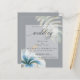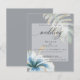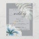 Affordable Rustic Tropical Watercolor Hibiscus and Foliage Wedding Invitation | NEW! Affordable Lightweight Wedding Invitations - a single dusty blue tropical hibiscus flower and one split leaf philodendron leaf adorn opposite diagonal corners both, edged in sparkling gold all set on a medium grey background with a sheer white overlay for the text to be easily read and yet allow the design to show through - beautiful handwritten calligraphy - easy to customise template - original design by ©WhimsicalArtwork™ for theBarefootBride ™. This is part of our Watercolor Tropical Hibiscus wedding collection as well as Baby Shower, Birthday and Christening Invitations. For question or assistance please contact designer indy.designer@yahoo.com.