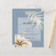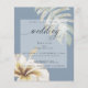Affordable Rustic Tropical Watercolor Hibiscus and Foliage Wedding Invitation | NEW! Affordable Lightweight Wedding Invitations - a single yellow gold tropical hibiscus flower and one split leaf philodendron leaf adorn opposite diagonal corners both, edged in sparkling gold all set on a dusty blue background with a sheer white overlay for the text to be easily read and yet allow the design to show through - beautiful handwritten calligraphy - easy to customise template - original design by ©WhimsicalArtwork™ for theBarefootBride ™. This is part of our Watercolor Tropical Hibiscus wedding collection as well as Baby Shower, Birthday and Christening Invitations. For question or assistance please contact designer indy.designer@yahoo.com.