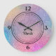 Budget buy! Pretty sparkly rainbow colours, faux glitter print on this 10.75" diameter grade-A acrylic wall clock. Also available in a smaller 8" diameter. Easily change the name using the Template provided. Perfect for a teen's room, dorm room or home office decor. Printed with AcryliPrint®HD process to ensure the highest quality display of any content. Non-ticking design, requires an AA battery (not included). High ratings. See "About This Product" for more information.