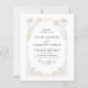 A wedding invitation featuring elegant vintage calligraphy inspired by traditional script fonts. The design includes delicate hand-drawn floral arch inspired by garden trellis with intertwined roses, flowers and leaves. Minimalist and elegant perfect for traditional and garden wedding.