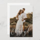 Budget Calligraphy Script Photo Engagement Party Invitation features a modern calligraphy script overlay, along with your party details on the back.