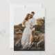 Budget Calligraphy Script Photo Engagement Party Invitation features a modern calligraphy script overlay, along with your party details on the back.