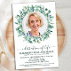 Modern Eucalyptus Memorial Funeral / Celebration Of Life Invitation. These sympathy funeral invitations feature a photo in a eucalyptus greenery wreath design. Personalize this celebration of life funeral invitation with your loved ones photos, name & dates, event details. COPYRIGHT © 2021 Judy Burrows, Black Dog Art - All Rights Reserved. Budget Celebration Life Eucalyptus Photo Funeral