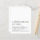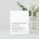 A value for money BUDGET alternative on a smaller size 4.5 x 5.6” semi-gloss 110lbs weight, which is of similar thickness to a postcard (however is not suitable to use as a postcard.). PLEASE NOTE there is ONE invite per sheet. Budget Celebration of Life Luncheon Invitation. A simple design with lots of white space for a contemporary modern touch. The header is large in stylish lowercase with the details beneath. Easily personalise the text to your own. You can also change the text and background colours if you wish via the customise further option in this fully customisable design.