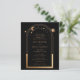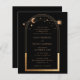 Budget Celestial Black Gold Sun Moon Astronomy Wedding Invitations features gold sun, moon and stars with a golden frame on a black background. Inside is your custom wedding invitation information. Personalise by editing the text in the text boxes. Designed for you by Evco Studio www.zazzle.com/store/evcostudio