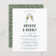 This preppy modern bridal shower invitation features two hand-drawn champagne flutes with cute bows filled with faux gold glitter champagne. Your bridal shower details appear in stylish sans serif typography accented by handwritten style calligraphy in navy blue. These delightful invites reverse to a dainty floral pattern in sage green with pretty pale blue-white flowers. As part of the budget selection on Zazzle, this sheet isn't a standard invite size or paper quality. If you want this design on an invitation card you can find it in our store or use the Zazzle Make Machine to transfer it onto the product of your choice.
