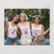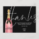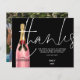 A budget price paper alternative. Envelopes are an optional extra. A stylish modern design in classic black with thanks in a large handwritten style set script in white, and a pink champagne bottle to the left with the typography overlapping slightly. Easily personalise the rest of the details. On the other side replace the sample picture with one of your favourite photos from your shower as a momento for your guests.