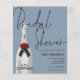 A budget price paper alternative. Does not include envelopes but there is an option to add them if you wish. A modern design with a silver Champagne Bottle with stylish handwriting style black set script Bridal Shower overlapping slightly and a dusty blue background on each side. Easily personalise the rest of the details. You can also change text and background colours on either side if you wish via the Customise Further option.