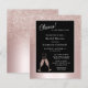 On a luxe background of blush pink metallic foil, our elegant budget Bridal Shower invitation features a blush glitter ombre design with bubbling champagne glasses toasting the bride-go-be. In a black frame you'll find example text that you can easily revise with your own details using the personalisation template. The back of invitation displays the unique ombre glitter design without text.