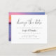 Yikes! Unforeseen circumstances happen, and when they do, you can easily let your guests know in a fun and easy way that you are needing to postpone your wedding date with this minimalist black and white wedding postponement postcard. Featuring "change the date" in a chic calligraphy font along with simple serif typography. As part of the budget selection here on Zazzle, these invitations do not come with envelopes nor do they fit snugly in a standard-sized envelope. The closest size is A6 but there will be a gap of approximately half an inch. If you don't mind the lack of snugness you could use such widely available A6 envelopes. Otherwise, this design can be transferred to a standard 5x7 format (which comes with envelopes) using the design transfer tool. As a rough guide, as of the time of writing, 100 budget invitations (including a volume discount) would cost around $39 whereas 100 standard 5x7 invites including envelopes would cost approximately $135. Your mileage may vary depending on Zazzle's available promo codes, site-wide sales, or changes in pricing.