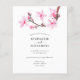 Budget Modern Minimal Cherry Blossom Wedding Evening Party QR Code Invitation. The font colour and type can be changed via the edit menu. You can also change text and background colours on either side if you wish. A value for money smaller 4.5 x 5.6 inch alternative defaulted to the semi gloss option which is recommended for invitations and is a similar thickness to a postcard. The satin option is much thinner. Add your QR code to your wedding website on the back as a convenient option for your guests to RSVP. QR codes can be created free online. Simply search “QR code creator” and select one of the free creators. You can also remove the QR code should you wish.