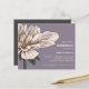 Stunning and Elegant Bridal shower invitation, featuring a magnificent Dahlia Flower in bloom in watercolor palette of exquisite ivory nuances and forest green leaves on left of the card. Background colour is elegant mauve.