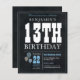 Rustic Vintage Chalkboard White Blue Balloon 13th Birthday Party Invitation