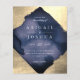 Stylish wedding invitations featuring a diamond-shaped navy watercolor overlay with champagne gold foil corners. Your details are displayed with classy, elegant typography combining script and serif fonts. As part of the budget selection here on Zazzle, these invitations come in limited sizes and paper stocks. If you need a different size or paper stock, this design can be transferred to a standard 5x7 format using the design transfer tool for more options.