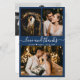 Budget, Modern, Elegant, Handwritten 3 Photo Collage Navy Wedding Thank You Card. Minimalist wedding thank you card template featuring three (3) photo on the front and (1) one photo on the back side. With the text "Love and thanks" script in a cursive hand lettered calligraphy swash-tail font in white colour on navy blue colour background. Little heart between the names. Personalise your custom name and thank you message. If you prefer to handwrite your note, just delete the sample text to make more space. If You need help or matching item, please contact designer!