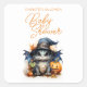 Adorable Watercolor Baby Dragon Halloween Baby Shower Sticker | Gender Neutral Pumpkin Orange Design.