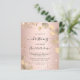 A blush, rose gold background decorated with eucalyptus greenery and faux glitter dust. Personalise and a name and ceremony details. Black coloured letters.
