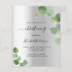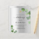 A modern, elegant baptism, christening invitation, gender neutral. Faux silver metallic looking background decorated with eucalyptus greenery, sprigs. Personalise and add a name and details. Black coloured letters.