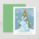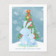 BUDGET Christmas Bunny Rabbits Looking At Tree In Snow personalised flat greeting cards from Ricaso - a delightful watercolor holiday card featuring a family scene of parent and child .. or grandparent .. or other adult with a small bunny