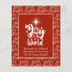 This Nativity Scene Joy to the World budget greeting card flyer style features a simple, elegant design to send out to family and friends. Personalise it with a message from your family to add your personal touch. Express the true reason for the Christmas season celebrating the birth of Jesus. Red and White Christmas Nativity scene announcing Joy to the World.