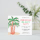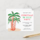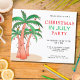 This budget Christmas in July party invitation is decorated with watercolor palm trees with lights and baubles.