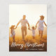 Budget-friendly simple and elegant holiday greeting card featuring your photo with "Merry Christmas" in a white script overlay. Personalise with your name in modern white typography. On the reverse side, add 3 additional photos and your holiday greeting.