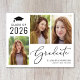 Simple budget-friendly Class of 2023 graduation announcement featuring a 3 picture photo collage and "Graduate" in an elegant script. Add the grad's name, class year and school or university in modern typography.
