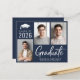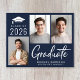 Modern dark blue budget-friendly Class of 2025 graduation announcement featuring 3 photos and "Graduate" in a contemporary bold white script. Add the grad's name and school or university in simple white typography.
