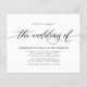 Simple, classic elegant budget wedding invitation features typography script in handwritten lettering ''the wedding of'' and details in bold capital lettering on a white background. No envelopes included.