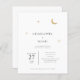 A minimalist modern celestial wedding invitation features a simple and elegant design. It includes a gold foil moon and stars that gently sparkle, set against a clean background. The invitation uses classic serif typography, which adds a traditional and formal touch with its neat and clear style. The combination of modern design, shiny gold details, and timeless fonts makes the invitation both beautiful and inviting, perfect for announcing a special and elegant wedding day.