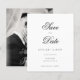 Announce your special day in timeless style with this elegant black and white photo Save the Date card. Featuring a romantic monochrome engagement portrait paired with sophisticated script typography, this design blends classic charm with modern minimalism. The graceful calligraphy font and clean layout create a refined, luxury feel—perfect for formal, traditional, or contemporary weddings.