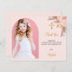 A modern and elegant confirmation thank you card. A blush background decorated with blush florals and pampas grass. Personalise and add your photo of the child inside the arch frame, thank you note and name.