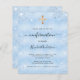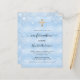 For a confirmation, celebrating a boy. A blue faux metallic looking background. Decorated with blue faux glitter dust. Personalise and add the name and details. The name and baptism are written with a hand lettered style script